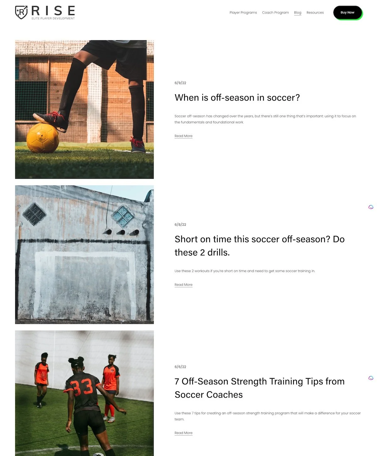 Elite soccer players need content and support to become soccer players who make travel teams, D1 scholarship rosters and the pros. We worked with the RISE Futbol team, the players, and reviewed the analytics to create content that helped plays become successful. The content proved to be exactly what RISE needed to drive awareness and new subscribers: